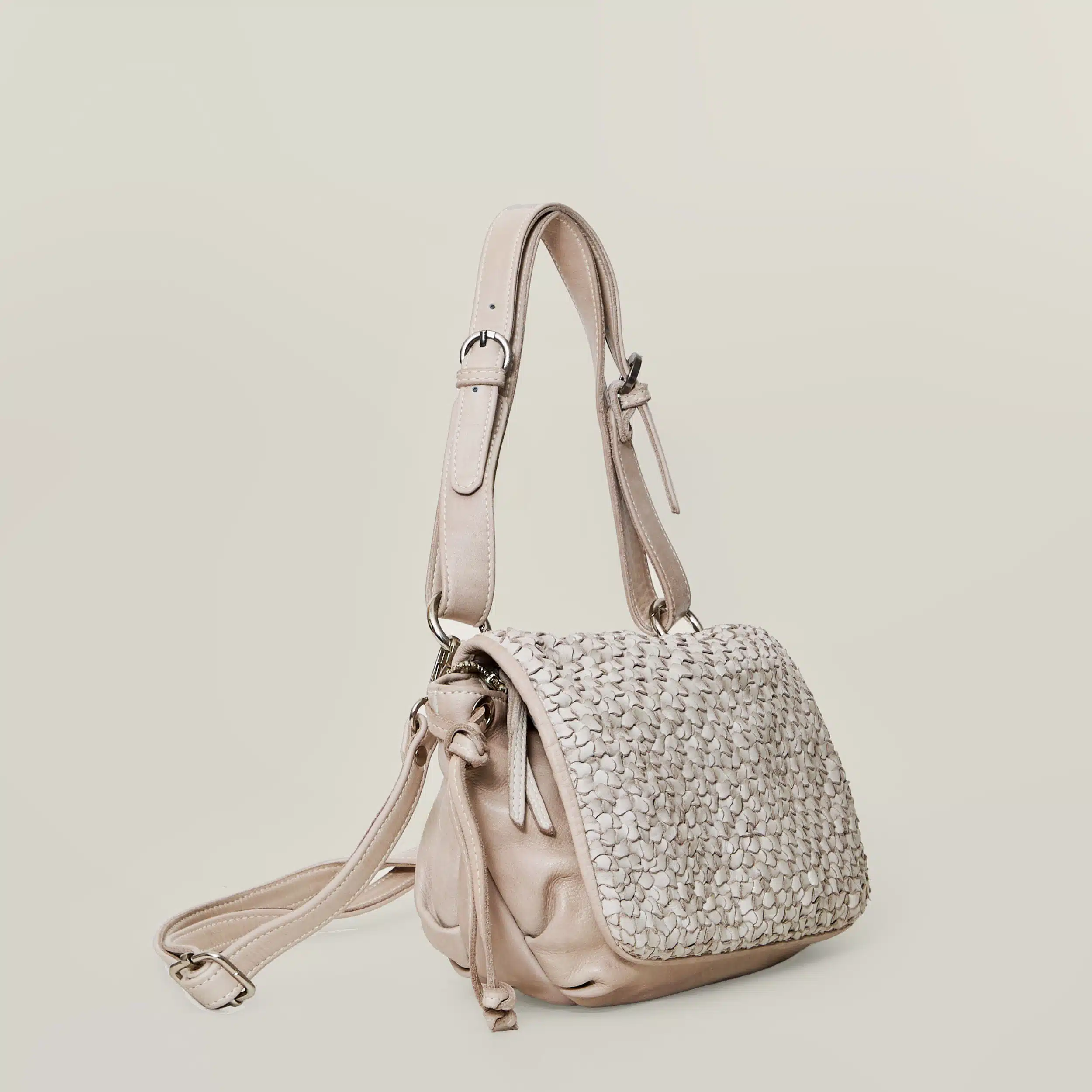 • Schulterriemen: Verstellbarer Glattlederriemen mit Metallschnalle