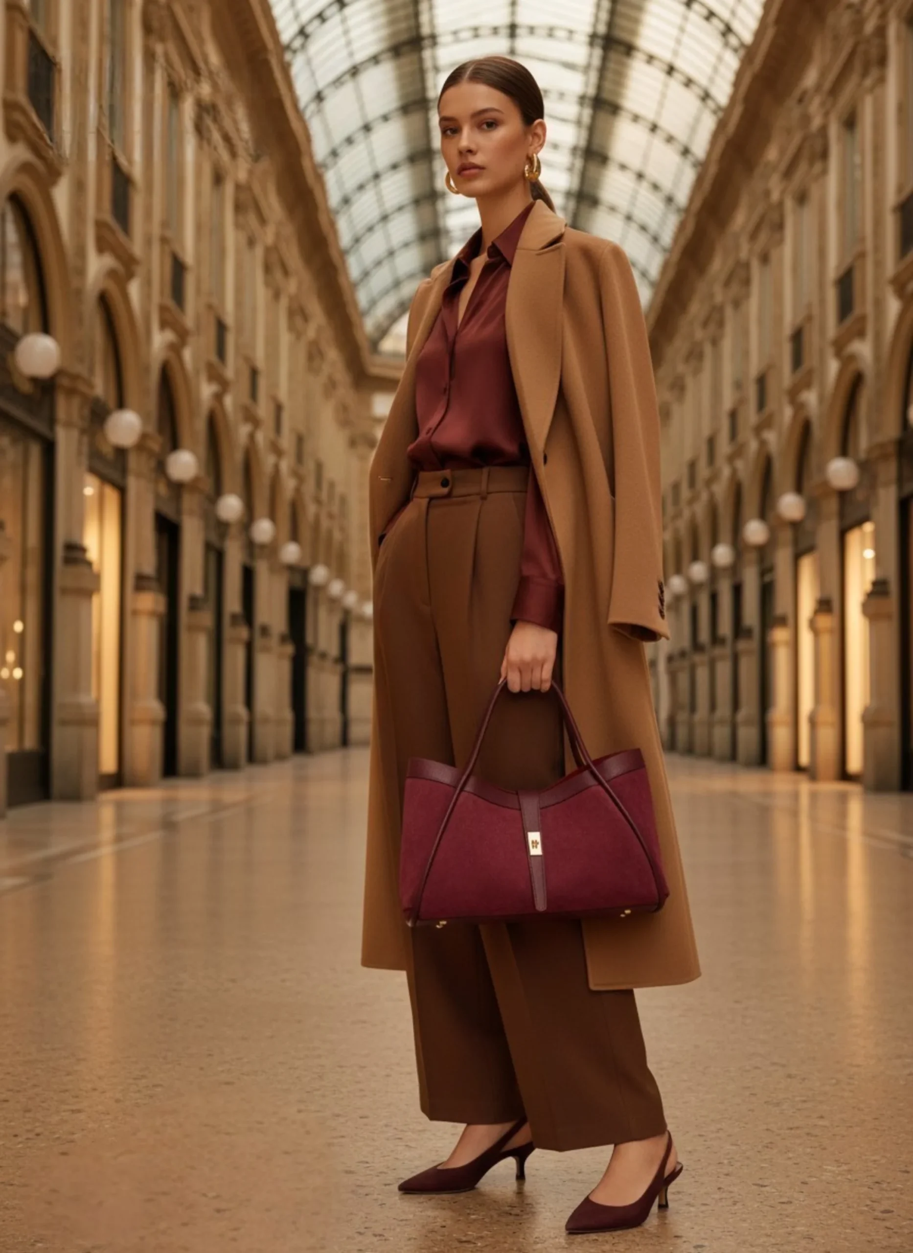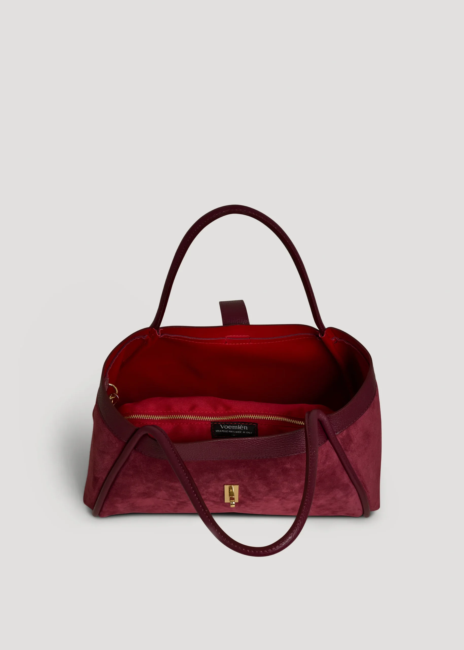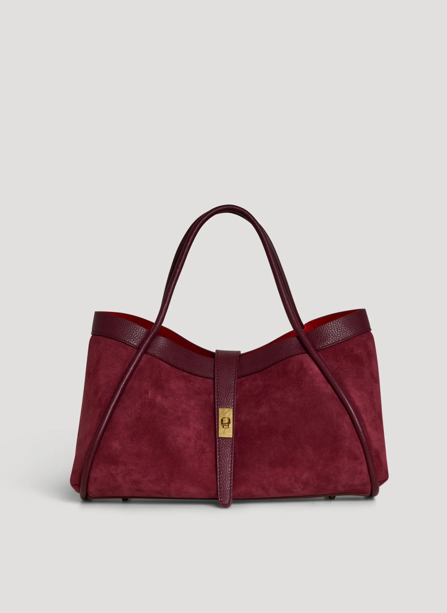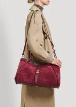 Mayfair Tasche aus echtem Wildleder und Togo-Leder, hergestellt in Italien, mit hellgoldenen Beschlägen.
