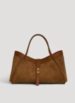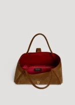 Mayfair-Tasche aus echtem Wildleder und Togo-Leder, hergestellt in Italien, mit hellgoldenen Beschlägen.
